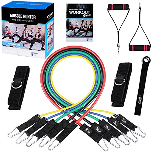 Fitness Insanity Stackable Exercise Bands with Door Anchor Attachment, Legs Ankle Straps, Exercise Guide and Waterproof Carrying Case