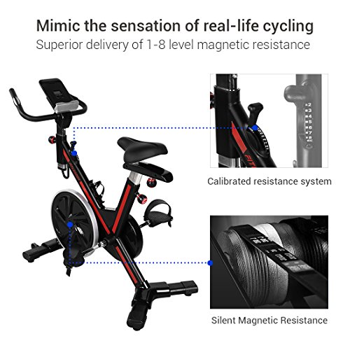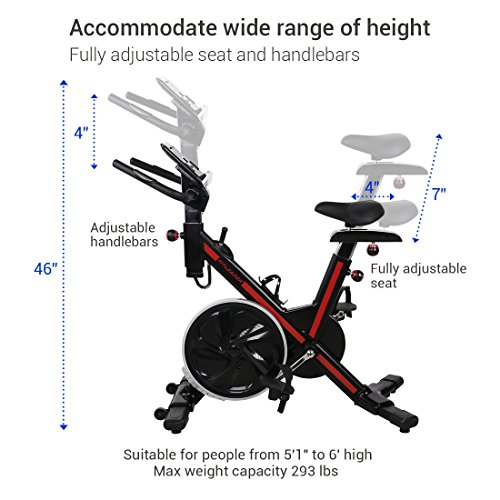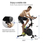Using Fitleader FS1 indoor cycling spin bike is an excellent way to improve your health and fitness in the comfort of your own home. It is suitable for people 5 ft 1 inch and 6 ft. It comes with magnetic resistance which provides a smooth and natural riding sensation for a low impact cardio workout. The seat height and horizontal position can be adjusted to get it in the right position. The handlebars can only be adjusted vertically. For most people this provides all the adjustment required to get the bike set up for an effective and comfortable workout. It comes with a console so that you can check your body during process. It does have a dual water bottle holder which is great to help you stay properly hydrated on long workouts.Features: